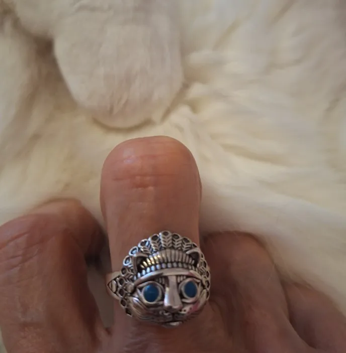 Kaïoni capture cette légende dans la Bague Chat Mystique. Une tête de chat élégante et féline, aux yeux bleu clair perçants comme deux flammes froides dans la nuit, surgit en acier inoxydable. Couronnée de plumes sauvages, elle semble prête à se dresser sur ses pattes arrière. Chaque courbe, chaque gravure est pensée pour évoquer le pouvoir insoupçonné qui sommeille en nous : celui de briser les règles, de danser dans l’ombre et de transformer la peur en force.